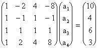 V=[1 -2 4 -8;1 -1 1 -1;1 1 1 1;1 2 4 8];