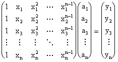Esto generaliza al caso general como sigue. Escribimos pn-1(x)=a1+a2x +...+anxn-1. Ahora