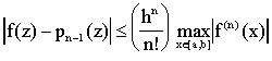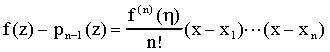 Teorema: Suponga que pn-1(x) interpola a la función f(x) en los puntos distintos x1, ,xn y que f tiene derivadas continuas hasta orden n en un intervalo I que contiene a los xi's. Entonces para cualquier z en I existe un h entre z y los xi's tal que: