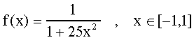 Esta propiedad (derivadas de todo orden acotadas uniformemente) no la poseen todas las funciones. El ejemplo clásico de este mal comportamiento en las derivadas es la función de Runge dada por: