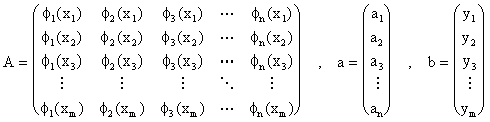 function a=leastsqr(n,x,y);