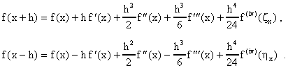 Si restamos estas dos ecuaciones, despejamos para f'(x), y usamos el teorema del valor medio aplicado a f'''(x) obtenemos la formula: