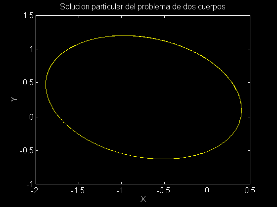 title('Solucion particular del problema de dos cuerpos')